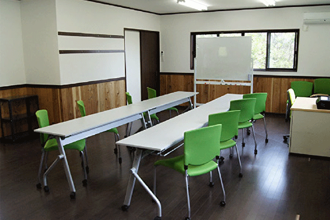 千葉県匝瑳市にある風の丘宿舎では、管理職・店長研修、スキルアップ研修の開催、レクリエーション・バーベキュー開催など、福利厚生施設としても活用しております。