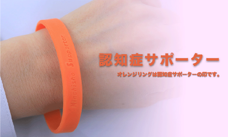 認知症サポーターとは?~ 認知症に対する正しい知識と理解を持ち、 地域で認知症の人やその家族に対して、できる範囲で手助けする人です。 オレンジリングは認知症サポーターの印です。 JKSでは多くの社員が 『認知症サポーター』として活動しています。